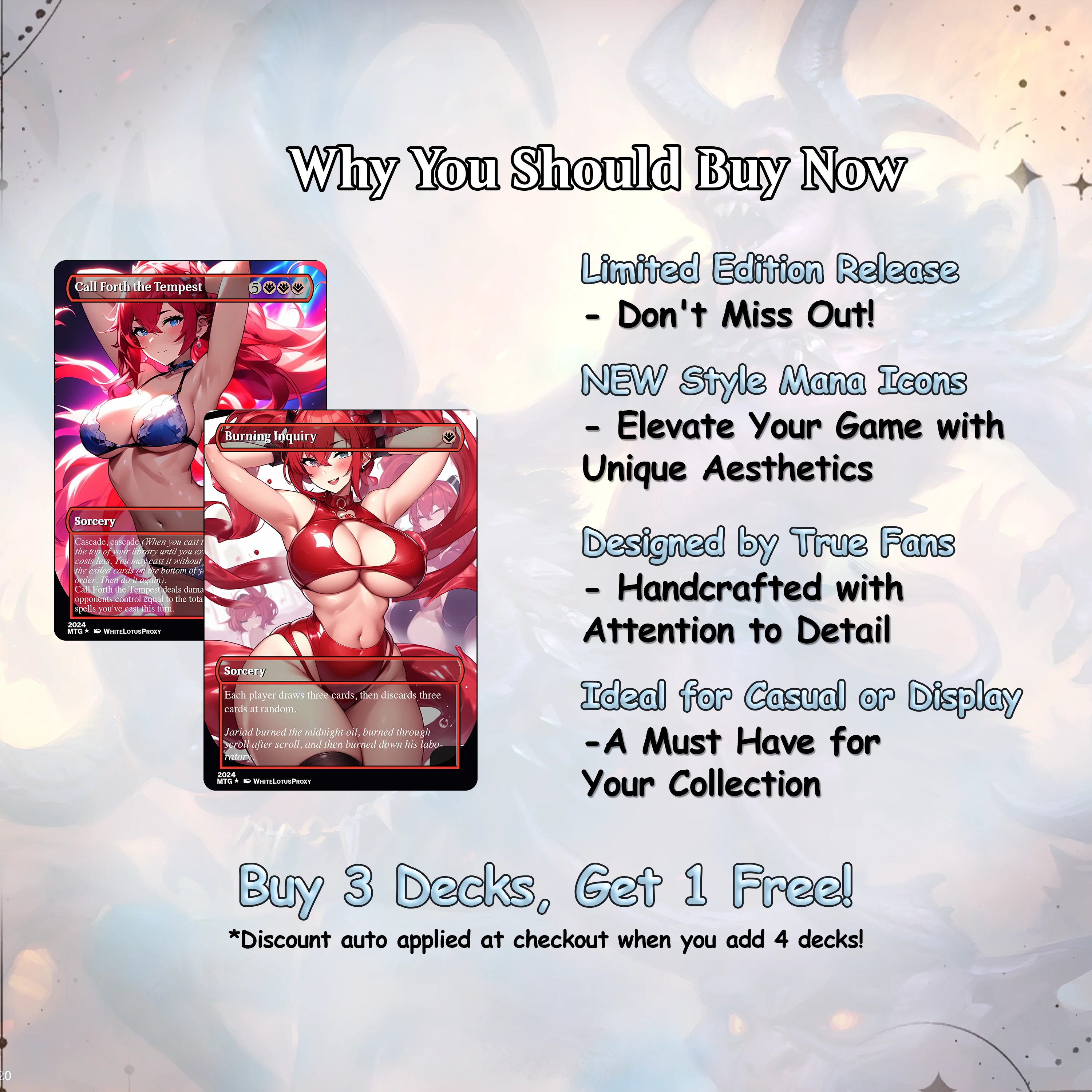 This is a fan-made custom proxy deck, not affiliated with Wizards of the Coast or any TCG publisher. It is intended for casual play, personal enjoyment, or collection. Always check with your local playgroup or store for proxy acceptance.