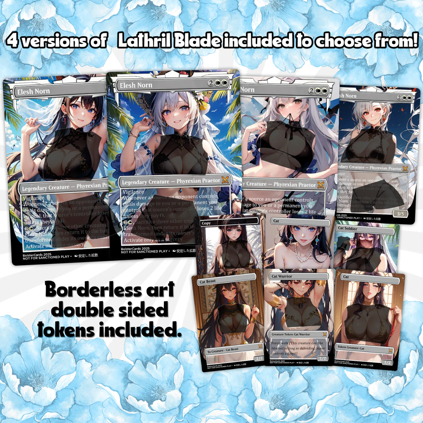 Borderless full-art anime waifu designs