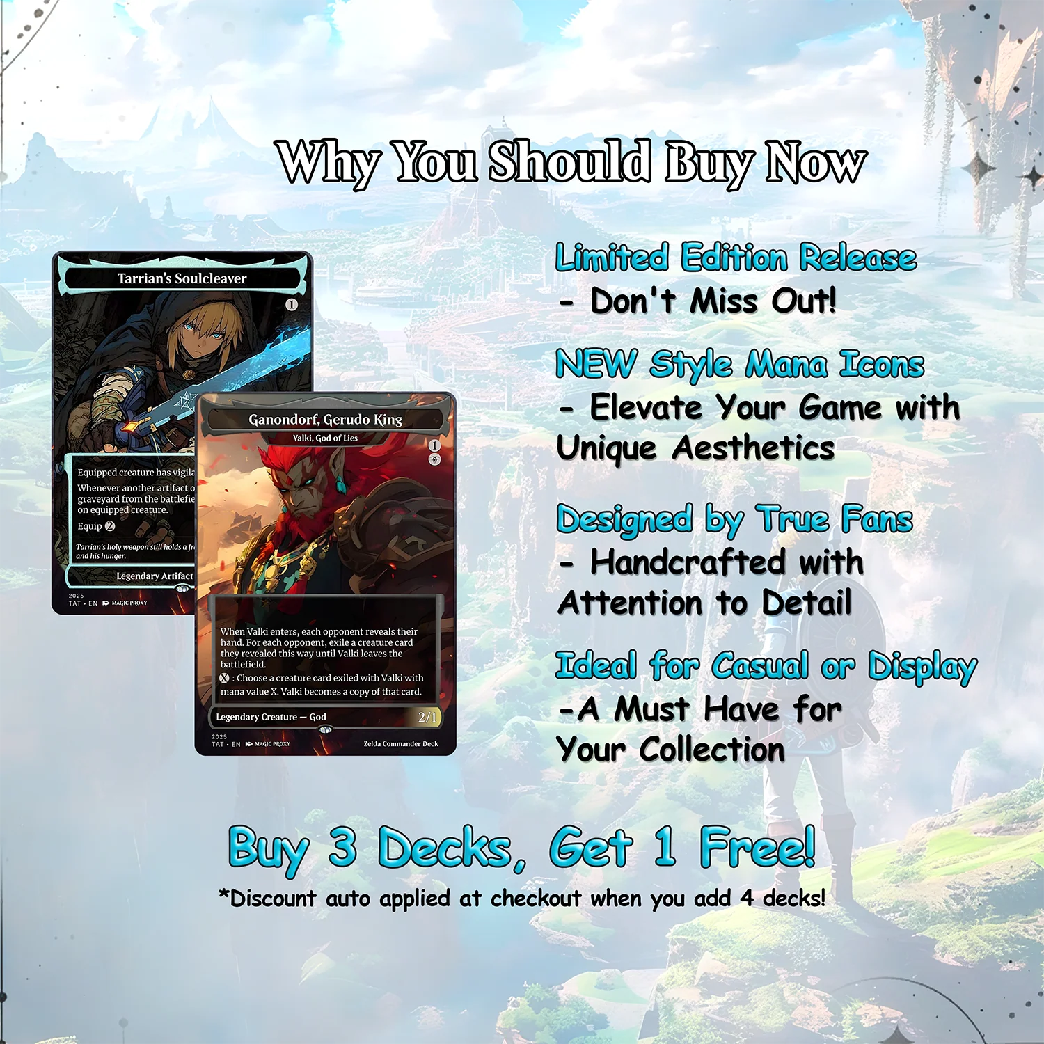 ✔ Custom full-art anime designs inspired by iconic Saviors of Hyrule Commander decks – made to wow